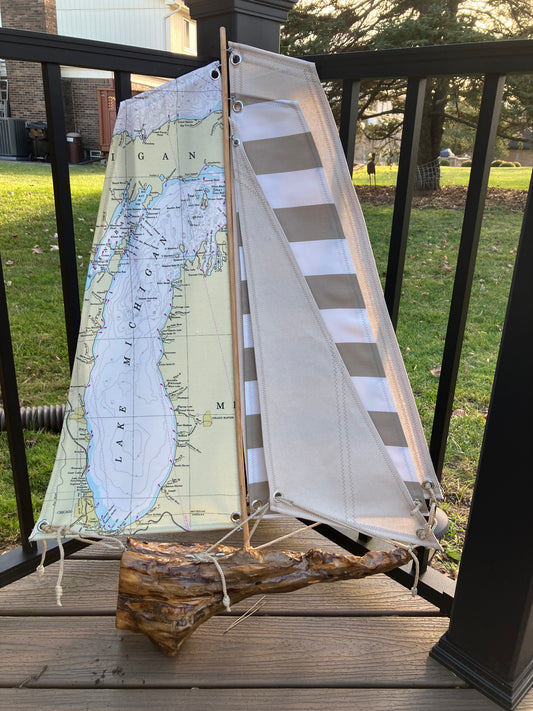 Lake Michigan Driftwood Sailboat with Cypress Knee